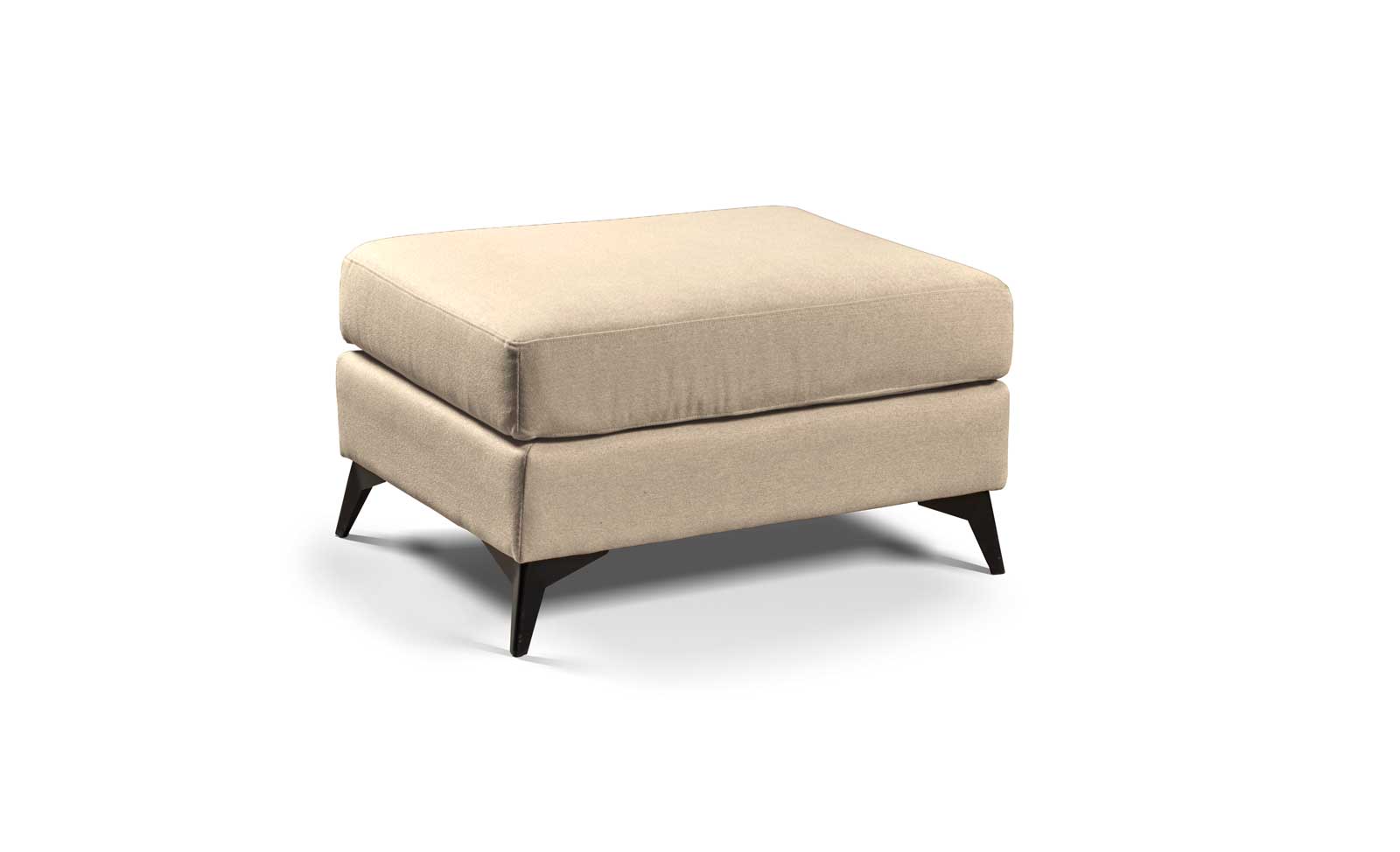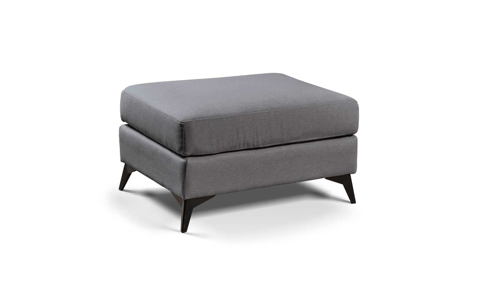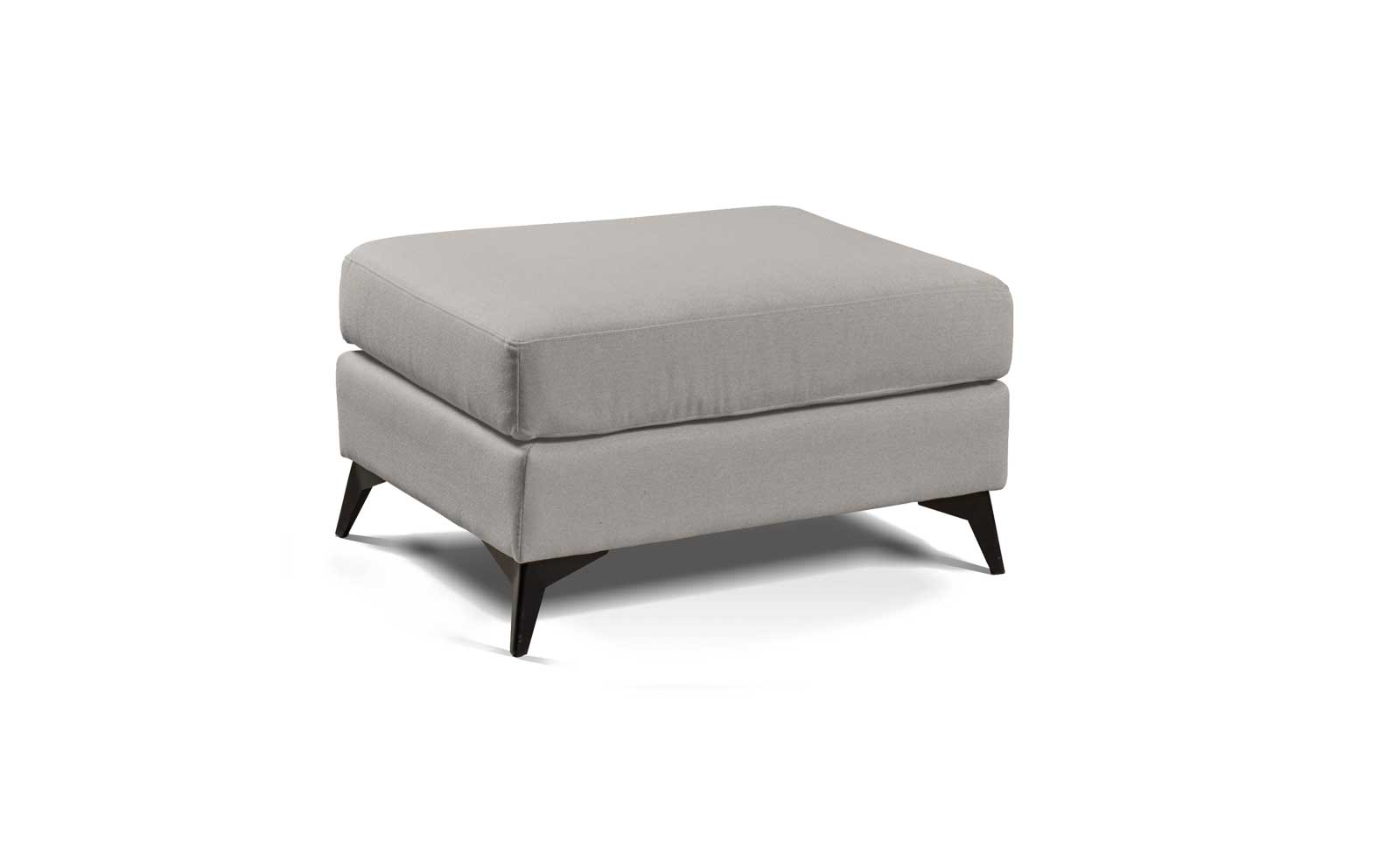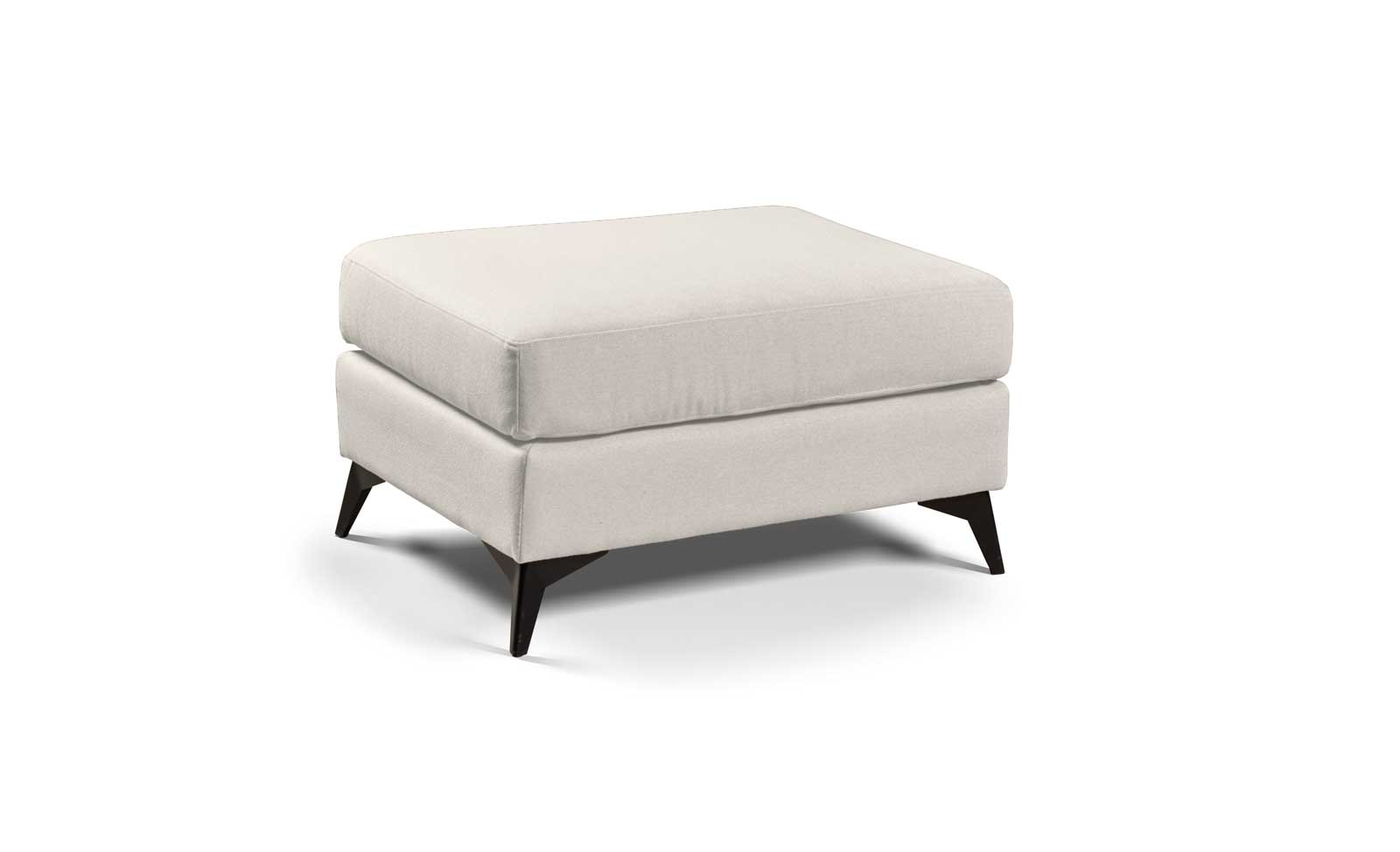 Puff reposapiés, confeccionado con tejido antimanchas, que se puede limpiar con agua. Con una pata de diseño metálica en color negro.